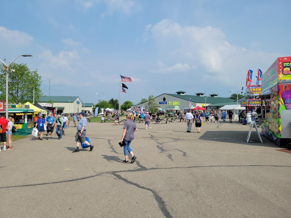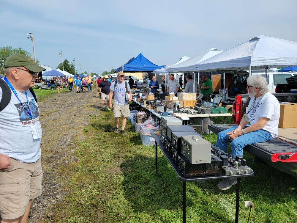 Dayton Hamfest at the Greene County Fairgrounds. One is of the "midway" where the big exhibition halls are with the vendors and food vendors, and the other is the flea market area. There were 5 or 6 rows of spaces several hundred yards long in the flea market. Lots of good junk. I could not even begin to capture the size of the event in a few pictures. W2RES