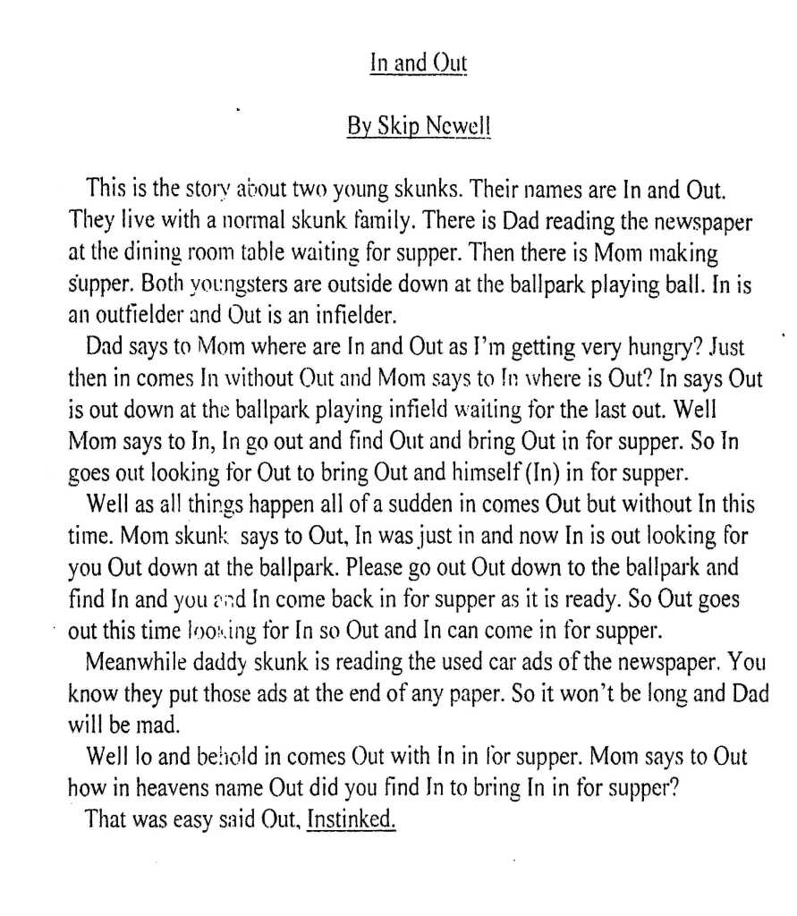 Posts Skip’s skunk story Skip’s skunk story K1WMN Share this: Click to share on X (Opens in new window) X Click to share on Facebook (Opens in new window) Facebook Like Loading...
